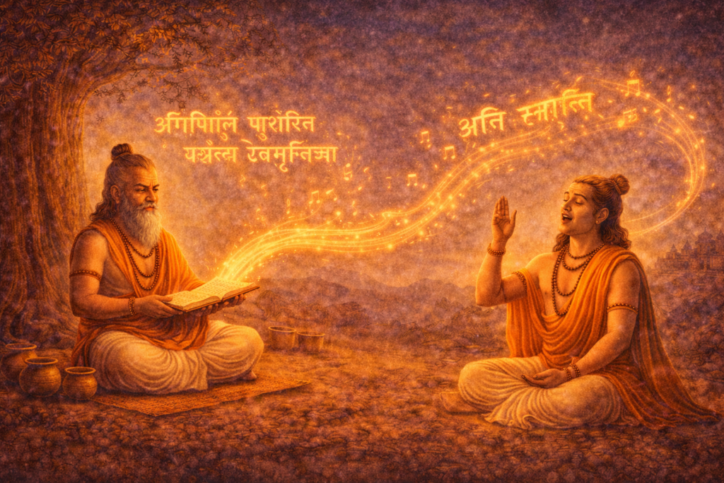 Sāmaveda is preserved exclusively through oral transmission (guru–śiṣya paramparā). This is not cultural conservatism it is functional necessity. Written notation cannot encode: