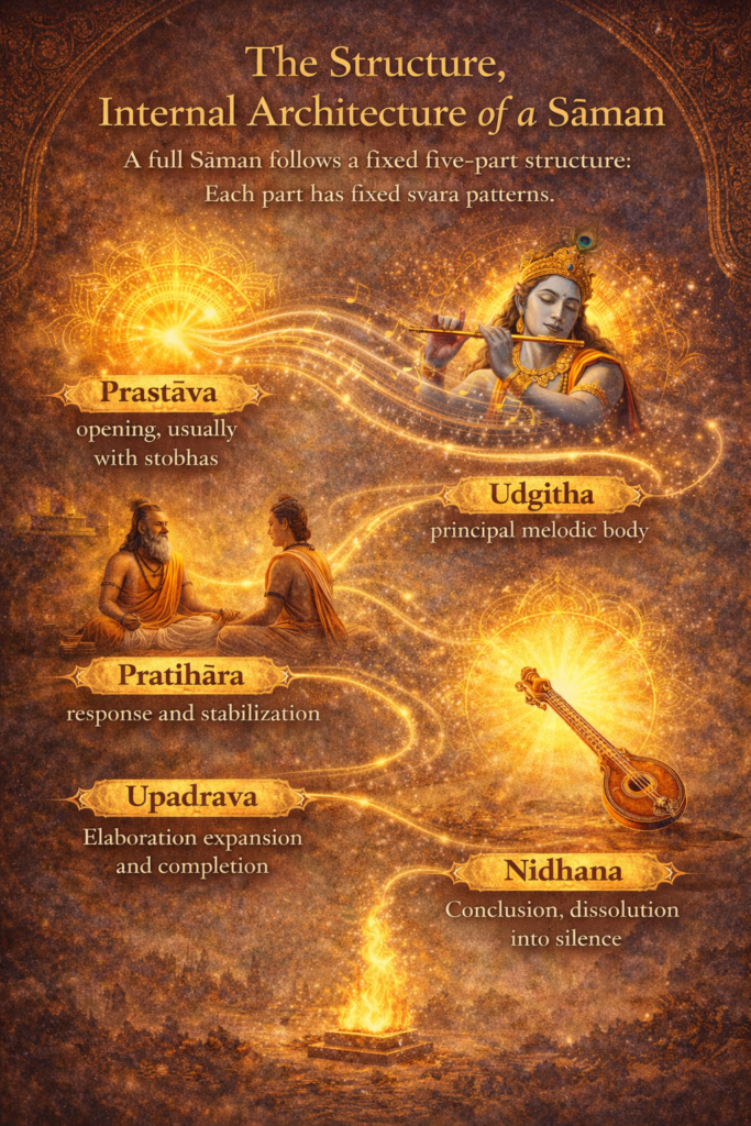 A full Sāman follows a fixed five-part structure: Each part has fixed svara patterns
